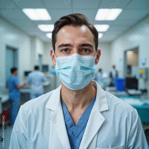 Doctor wearing mask in hospital setting