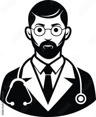 Doctor with Elements Vector Illustration Black and White Silhouette on White Background