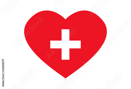 Doctors and nurses are heroes. Red heart logo with a white cross. Appreciation illustration.