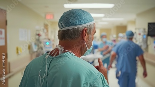 Doctors engaged in conversation while walking through a hospital corridor, showcasing collaboration and teamwork in a medical environment.