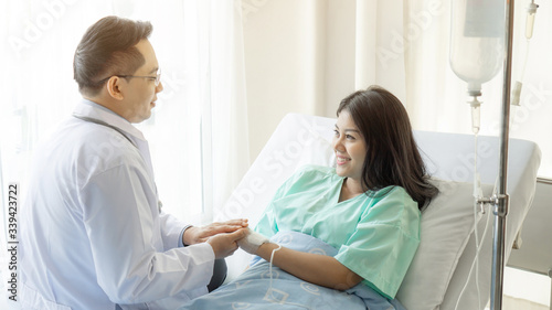 Doctors hold hands to encourage patients in the hospital- medical concept
