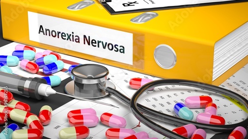 Doctor's table with medicaments and medical supplies. Yellow Folder