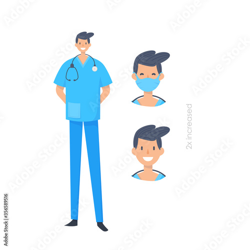 Doctors without mask and in mask. Medical workers on a white. Hospital staff. Vector illustration in a flat style. Trendy people.