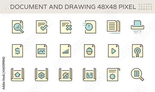 Document and drawing vector icon set design, 48X48 pixel perfect and editable stroke.