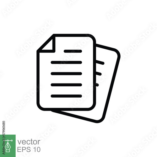 Document line icon. Simple outline style. Note, information, paper, sheet, pictogram, contract, copy concept. Page file, list text vector illustration isolated for web design. EPS 10.