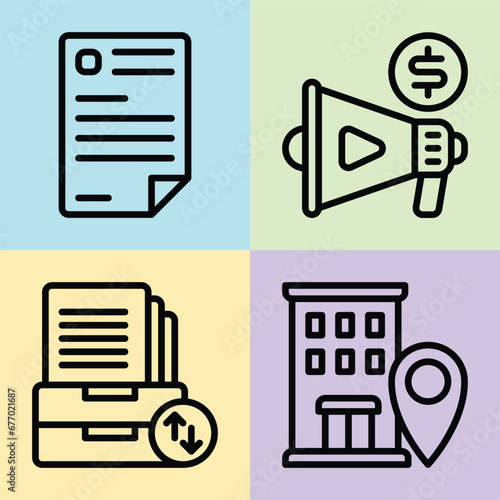 document megaphone archive office location vector line icon, suitable for business office work use.