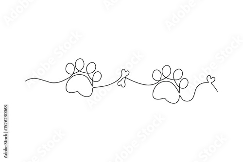 Dog and cat paw continuous one line art drawing of pet footprint outline minimalist single line unique vector illustration