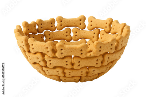 Dog bone biscuit bowl for pet food and treats, displaying snacks on transparent background