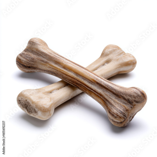 Dog bone with natural texture and detail, macro shot on white background, suitable for pet diet infographics and organic pet products