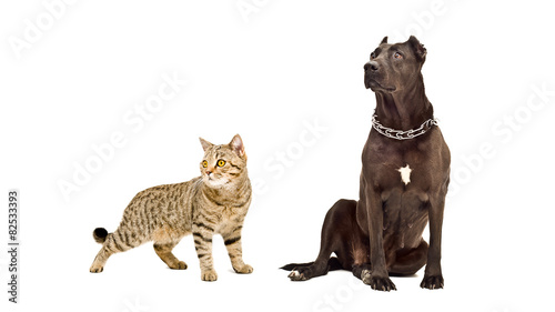 Dog breed Staffordshire Terrier and cat Scottish Straight