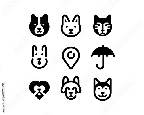 Dog head icon set. Dog flat style. silhouette vector illustration. Flat style. Cartoon dog face logo design template