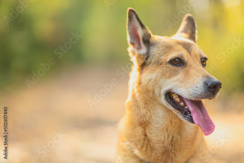 Dog in autumn leaves. Fall