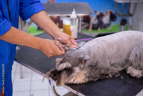 dog in the grooming salon.