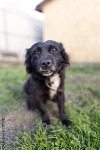 dog portrait near the house