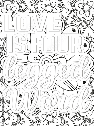 Dog Quotes Flower Coloring Page Beautiful black and white illustration for adult coloring book
