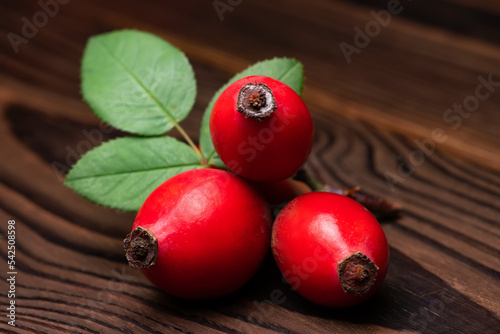 Dog rose with bunch branch Rosehips, types Rosa canina hips. Medicinal plants and herbs composition
