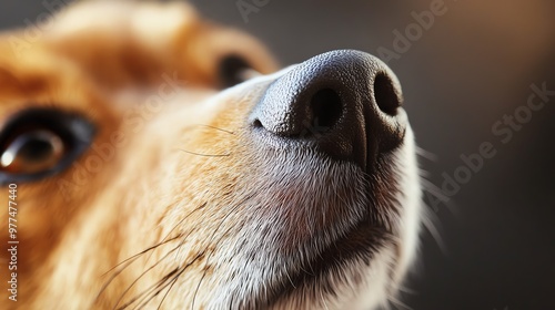 Dog s nose sniffing the air in curiosity, captured in detailed focus, Dog nose closeup, Curiosity and exploration