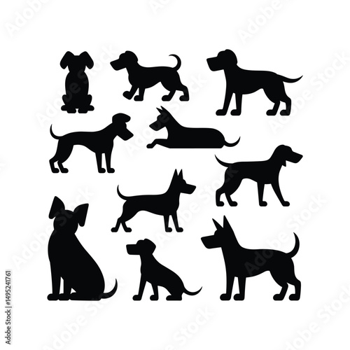 Dog Silhouette Vector Set – Various Breeds and Poses