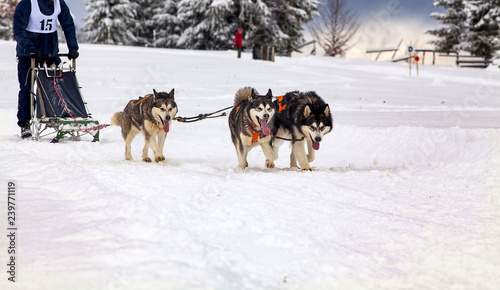 dog sled race with huskies