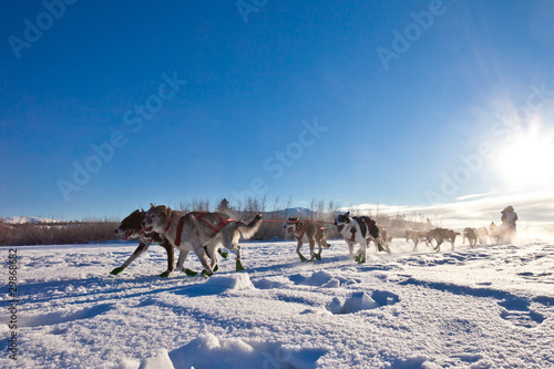 Dog team pulling sled