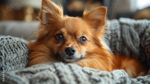 Dog. Very cute Spitz in a home environment.