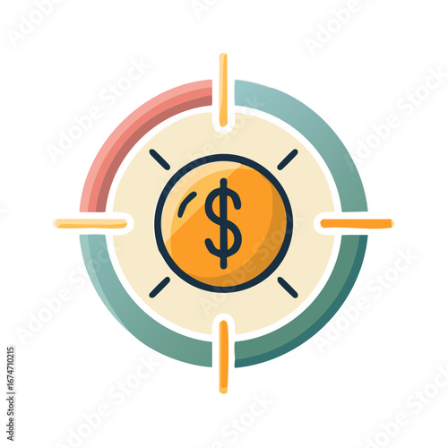 Dollar coin in target icon illustrates investment and finance goal strategy