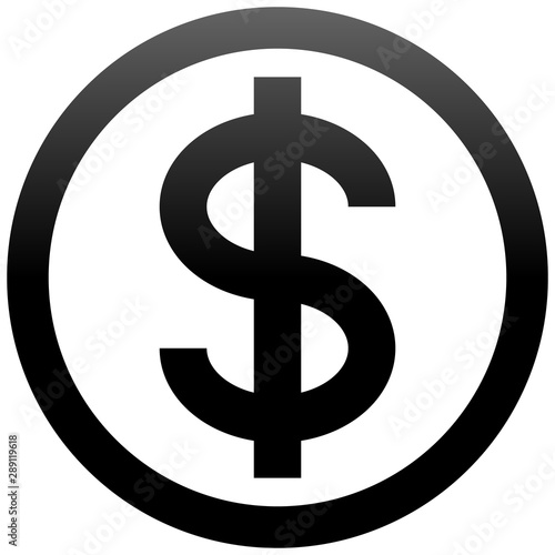 Dollar currency sign symbol - black simple inside of circle gradient, isolated - vector