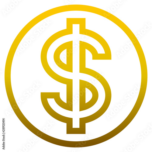 Dollar currency sign symbol - golden simple outline inside of circle gradient, isolated - vector