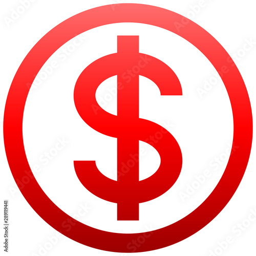 Dollar currency sign symbol - red simple inside of circle gradient, isolated - vector