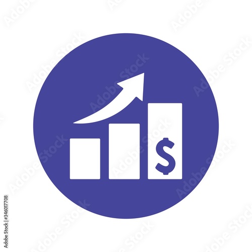 Dollar increase sign. Business profit up, economic growth symbol. Flat icon design.