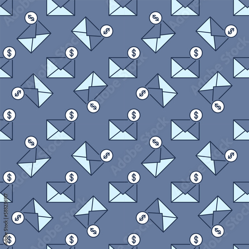 Dollar Sign and Envelope vector Email colored seamless pattern