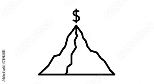 Dollar sign atop a mountain peak illustrating financial success and ambition