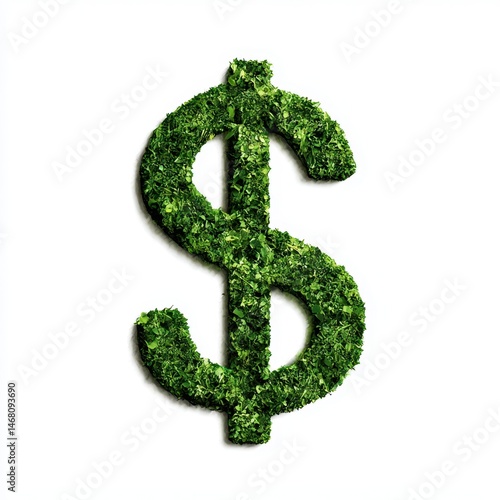 Dollar sign made of green leaves isolated on white background