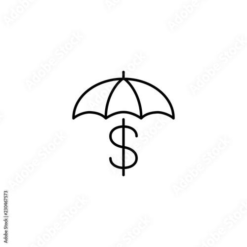 dollar sign under umbrella; money safety symbol line black icon on white background