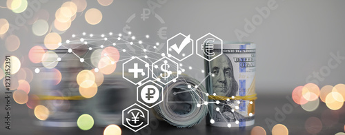 Dollars bills. Dollars background. Background of different us dollar banknotes. Finance concept.