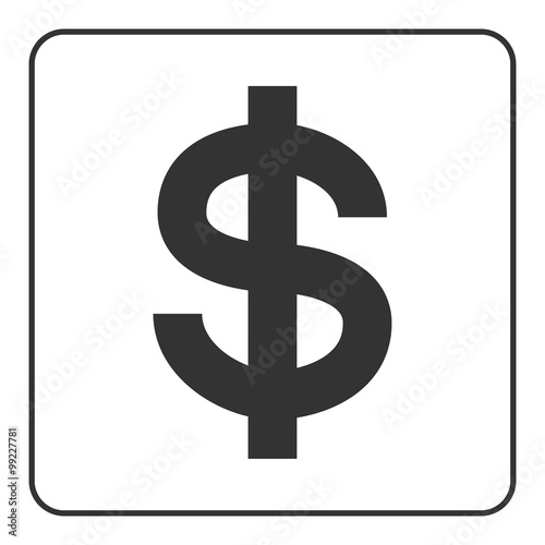 Dollars sign. USD symbol of currency, finance, business and banking. Money label. Gray flat icon isolated on white background. Flat design concept. Modern UI website navigation. Vector illustration.
