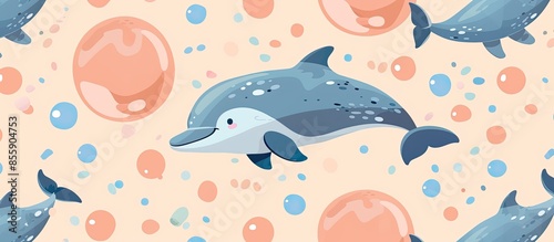 Dolphin seamless , A cute Dolphin on a pastel background. Copy space image. Place for adding text and design