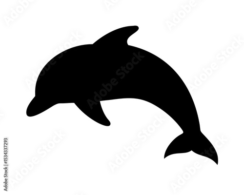 Dolphin Silhouette Vector - Simple Black Jumping Dolphin Symbol of Ocean Freedom