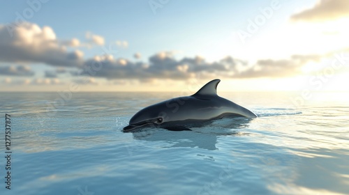Dolphin Swimming Gracefully in Calm Ocean Waters at Dusk