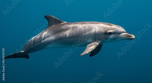 Dolphin Swimming Underwater in Deep Blue Sea Natural Marine Life