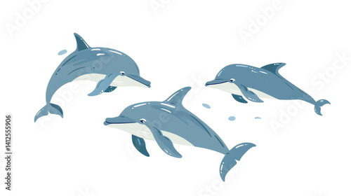 Dolphins swimming gracefully in clear blue water with a transparent background
