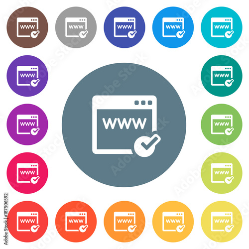Domain registration flat white icons on round color backgrounds