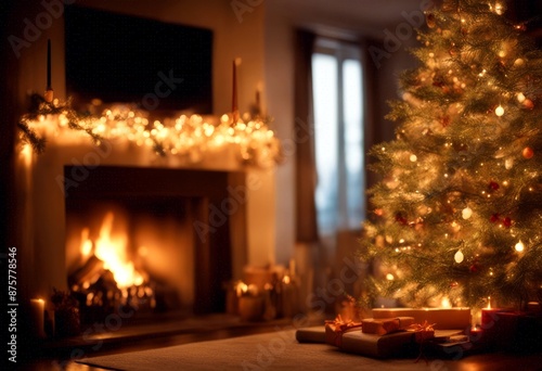 domestic britain glow celebration candle fire december log warm lights england english fireplace tree decoration christmas british