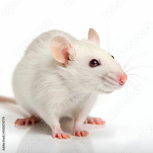 Domestic cute white rat on white background