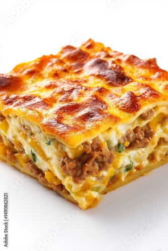 Dominican pastelon plantain lasagna slice with savory layers and cheese topping