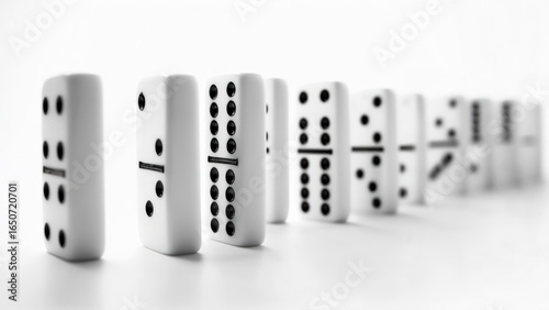 Domino Effect: Monochrome Row of Tiles on White Surface, Risk and Strategy