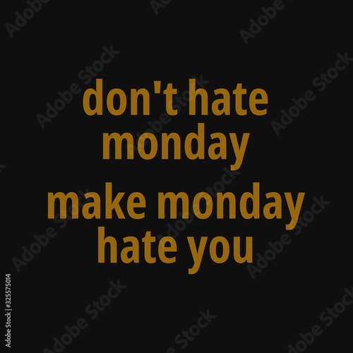 Don't hate monday, make monday hate you. Inspiring typography, art quote with black gold background.