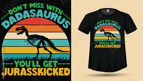 Don’t Mess With Dadasaurus You’ll Get Jurasskicked T-Shirt Design Vector, Funny Dinosaur Dad Retro Sunset Graphic