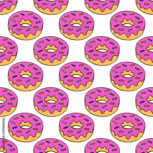 Donut isolated on white background. Donut icon in a flat style. Seamless pattern, background, card, poster. Template for design.
