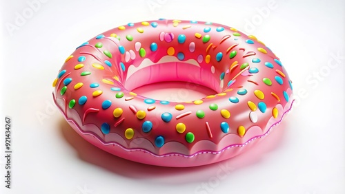 Donut shaped inflatable swimming rubber ring isolated on pure white background , pool, water, summer, fun, inflated, swim, buoy